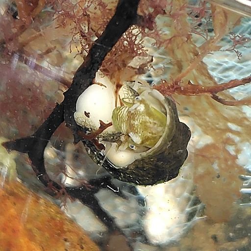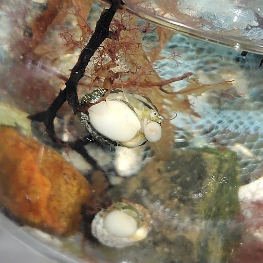 飼育生物。マルウズラタマキビ。殻の細かい模様が特徴。先の二枚と後の二枚は別個体。